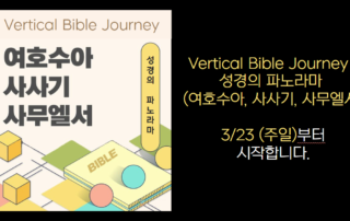Vertical Bible Journey 성경의 파노라마 2 (여호수아 사사기 사무엘서)를 3/23 (주일) 부터 시작합니다.