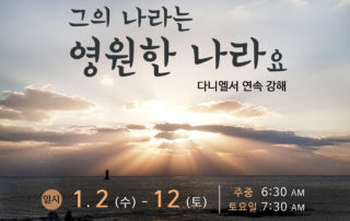 “그의 나라는 영원한 나라요”라는 주제로 다니엘 연속 강해가 진행됩니다.